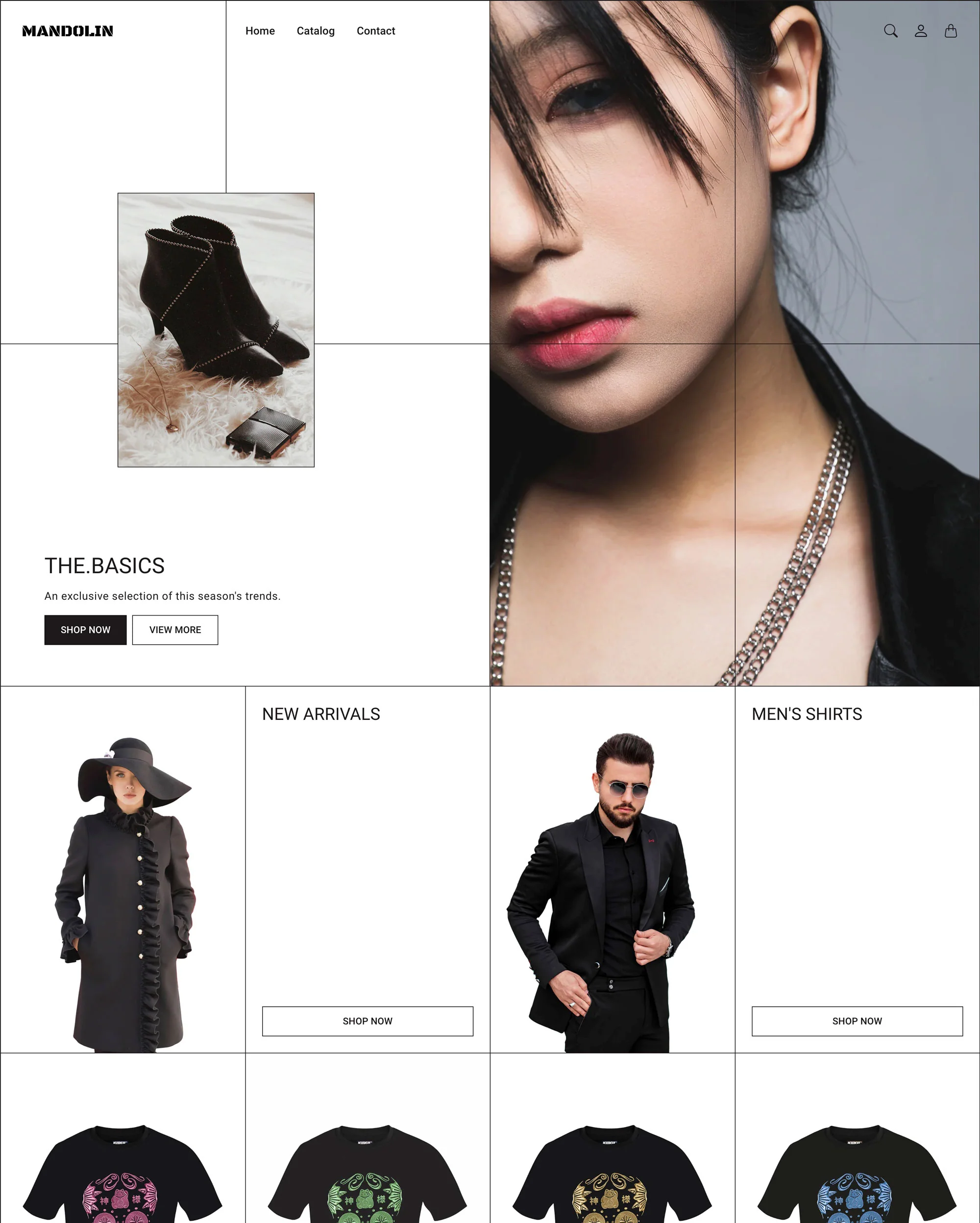 The theme is ideal for store owners who want a sophisticated yet user-friendly design that enhances their products and brand identity. With its easy-to-use customization options and stunning visual features, Mandolin makes it easy to create a memorable and impactful online shopping experience.